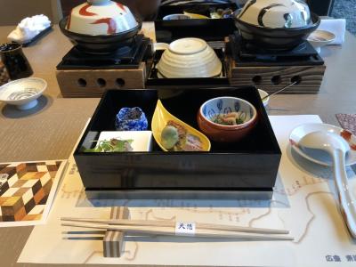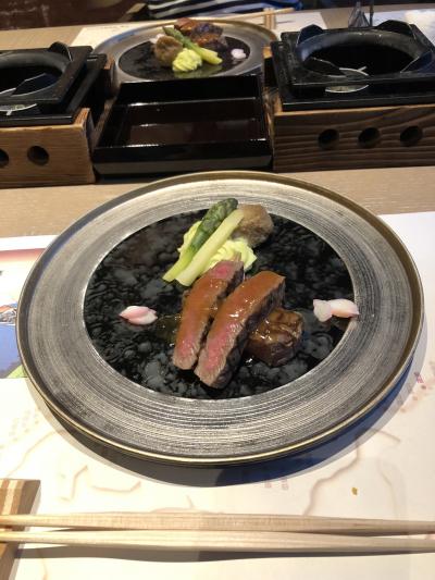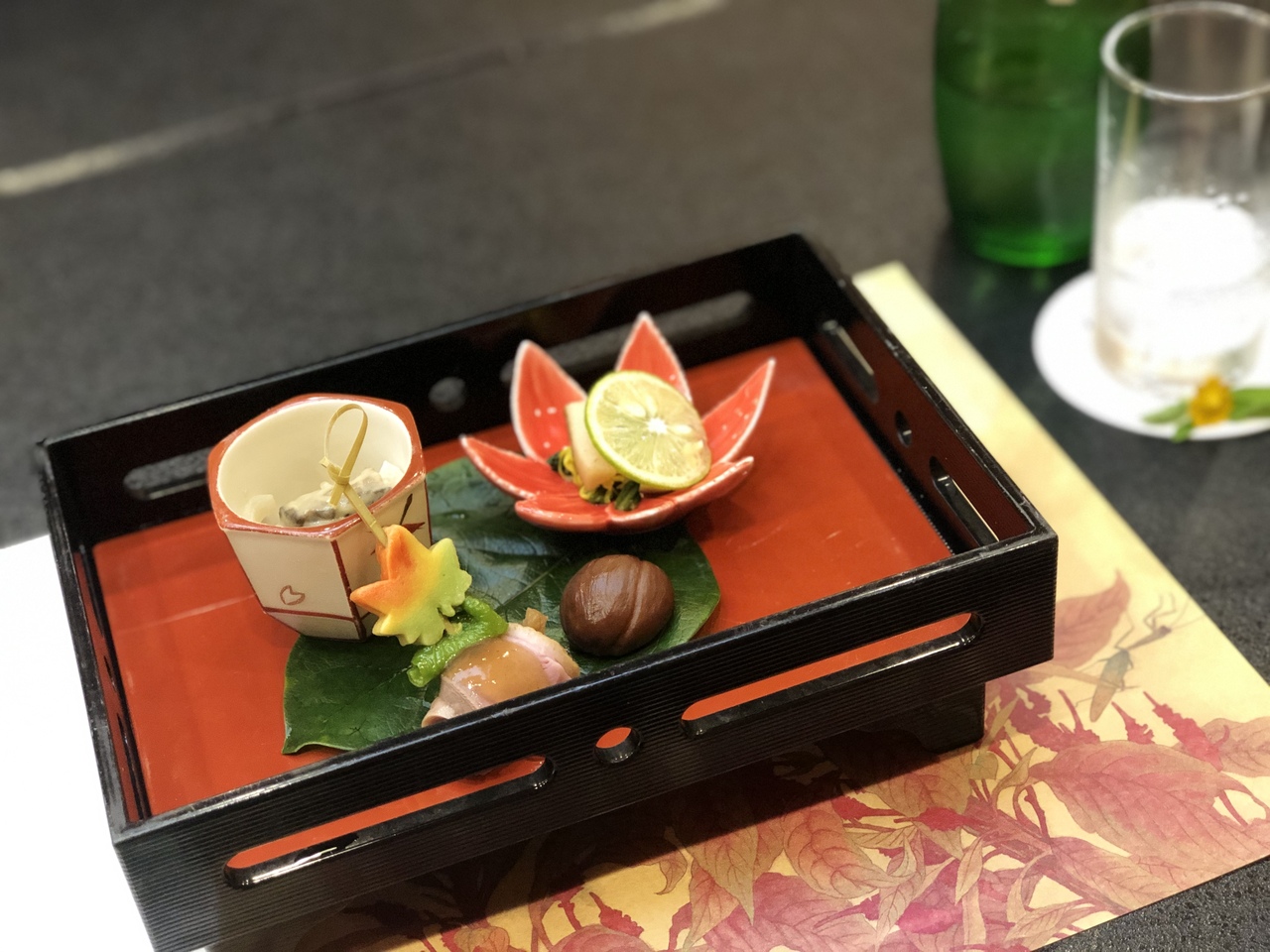 お食事は食事処で創作懐石料理。目でも味でも楽しませていただきました。