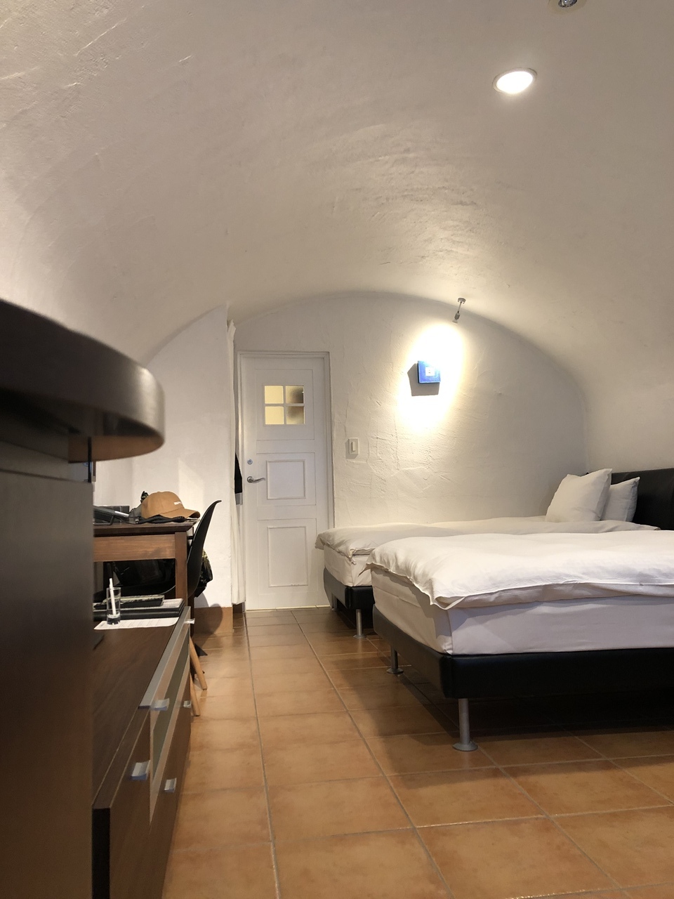お部屋はコンパクトな洞窟部屋。脱日常にはもってこいの雰囲気と景色を堪能しました。