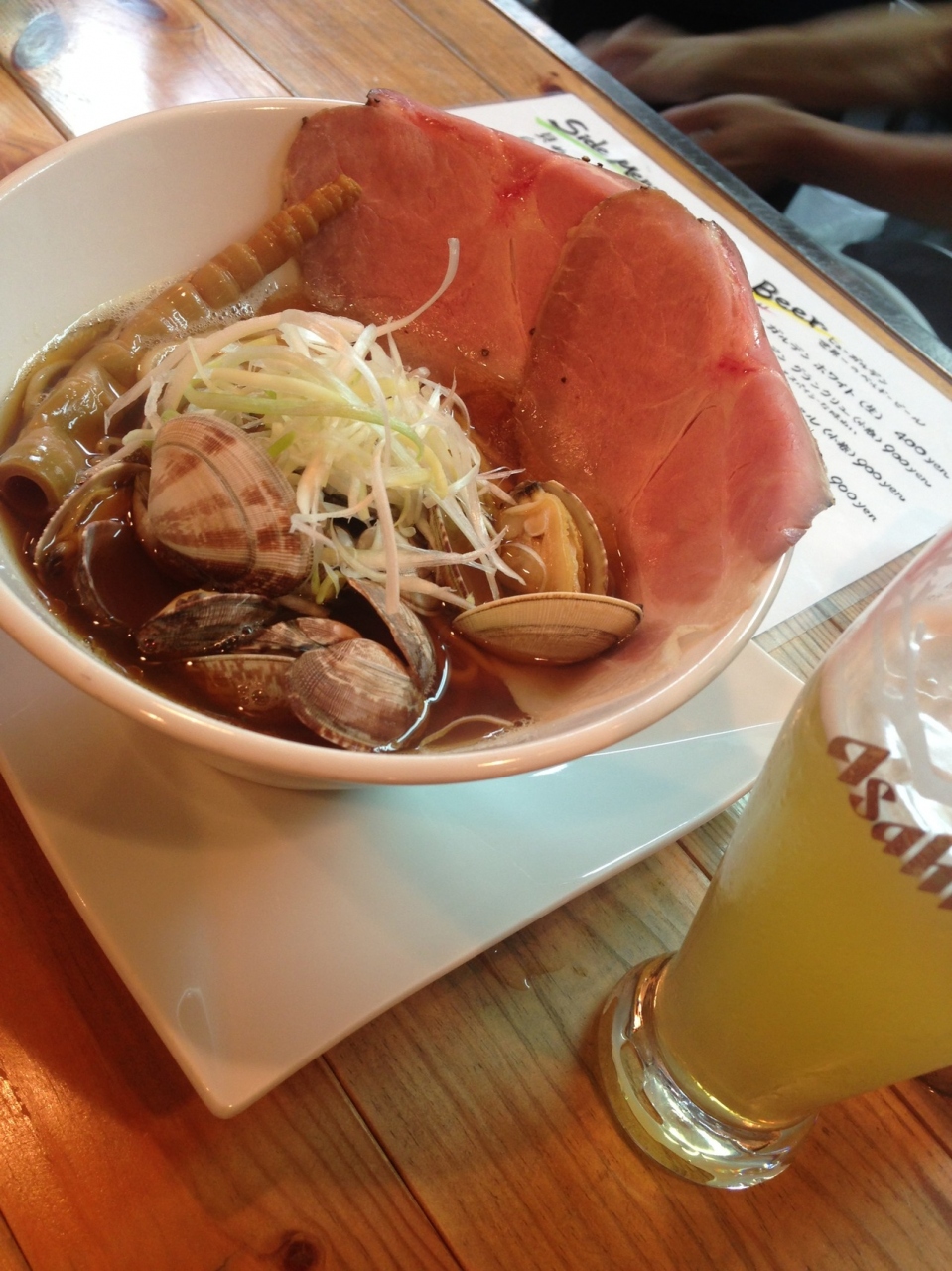 いつも並んでて食べたいと思っていたラーメン屋さん。友達と一緒に行ってきました。ラッキーなことに並ばずに入れて、あさりラーメン食べました。塩ラーメンかと思いきや醤油系のラーメンで、味に深みがあって濃くてビックリしました。ビールも美味しくて、ペロリと食べちゃいました。細麺より太麺が好きな私にもピッタリでした。また、はまぐりラーメンやしじみラーメンも食べに行かねば!