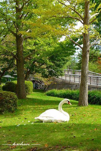 駐車場から湖の方に向かう途中に、いきなり普通に白鳥などの鳥が座っていて驚きます!