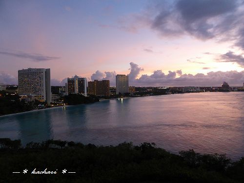 全室オーシャンフロントのホテル。タモンビーチビューは、高台から夕暮れのホテル群がきれいで気に入りました。