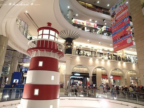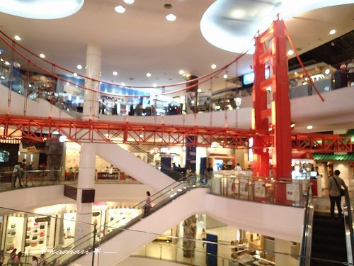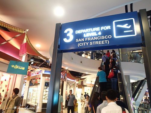 サンフランシスコ、ハリウッド、パリ、イスタンブール、東京など、各階が都市ごとに展示にテーマがあり、エスカレーターのゲートには「出発」「到着」の文字と飛行機の絵が入っていて、空港っぽい雰囲気を出しているショッピングセンターです。