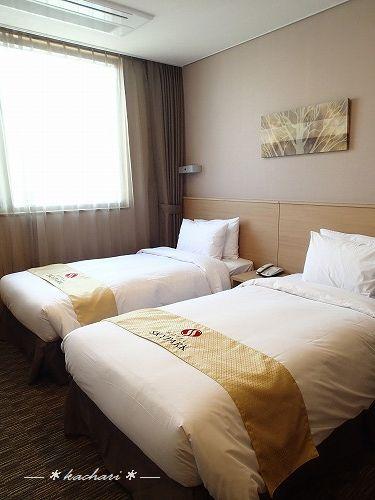 部屋はそんなに広くはありませんが、ホテル自体新しく清潔でとても快適に滞在できます。エレベーターホールにウォーターサーバーもありました(泊まったのは19階)。エチュードハウスのアメニティもかわいいです。ただひとつ困ったのは、バスルームの造りの問題か?シャワーをすると床が水浸しになって、敷いてあったバスマットが絞れるほどぬれてしまうことでした。それ以外は、ホテルの人も親切だし良いホテルでした。- 旅行時期