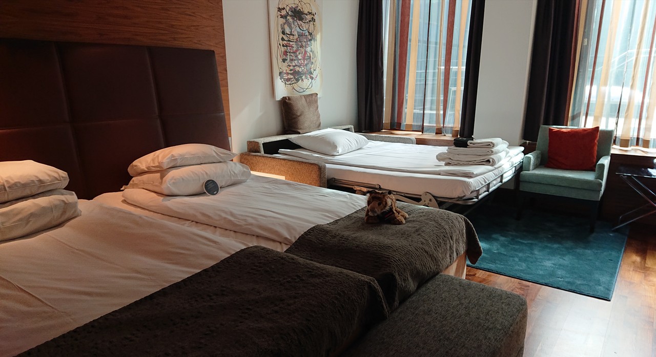 お部屋は、3人でだったので、ツインベッド+ソファーベッドで、やや狭く感じましたが、清潔で機能的でした。