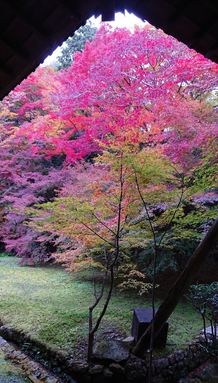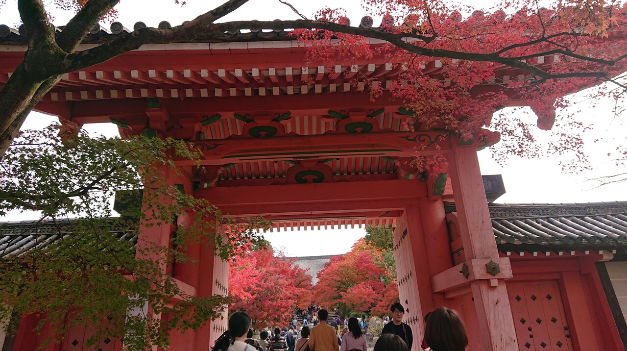 山門から、真っ赤な紅葉が見えて、感動しました。