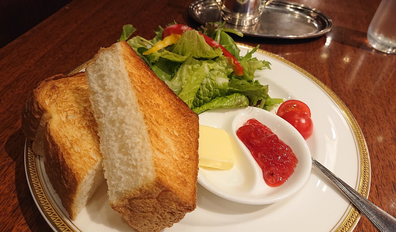 銀座のお手頃な、モーニングセットに、プラス料金で、カフェオレにできます。