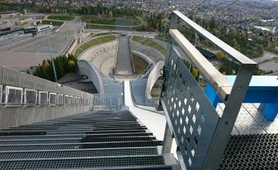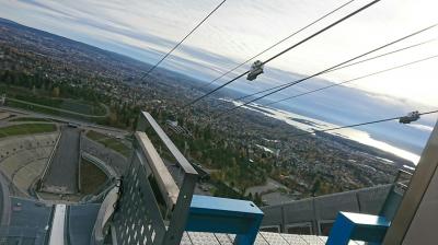 でも、何より、エレベーターで上った先のジャンプ台からの景色は、怖かったけど、最高でした。オスロの街が360度見渡せます。