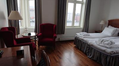 トラム乗り場も近く、地下鉄Stortingetも徒歩数分で、便利な立地です。