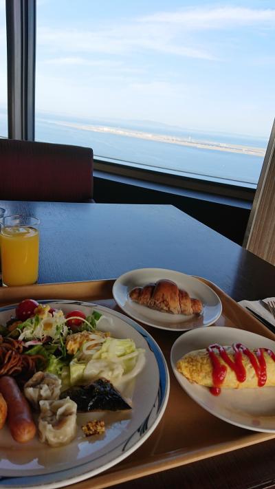朝食会場の最上階レストランからは、関空の飛行機の飛び立つ所が見えました。