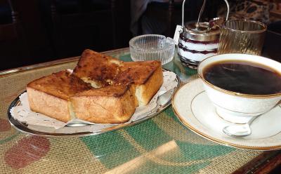 この日は、2人だったので、アーモンドトースト+コーヒー、サンドイッチ+コーヒーを注文。どちらも500円台でした。