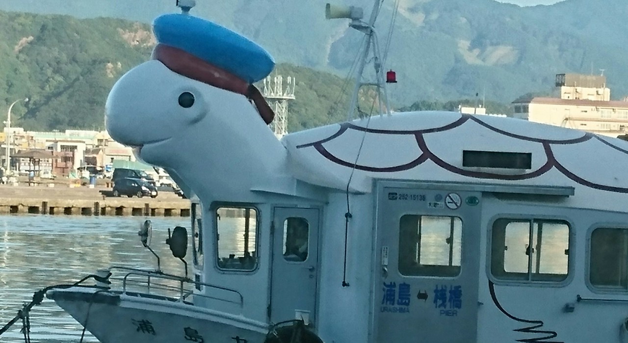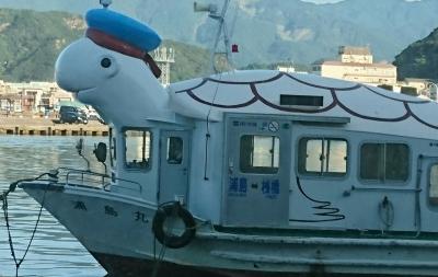 専用駐車場に車を停めて、マイクロバスで港へ、そこから、かわいい亀の船でホテルまで乗せて行ってもらいました。