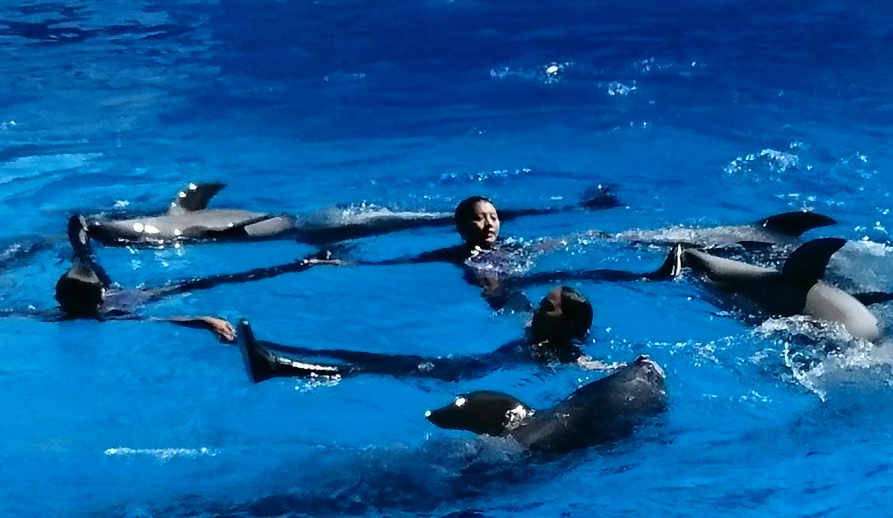 これが、想像していた従来のイルカショーとはまったく違い、とても素晴らしかったです。人とイルカと音楽と、南紀白浜の風!