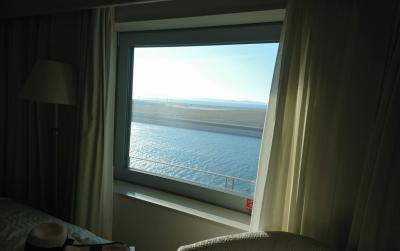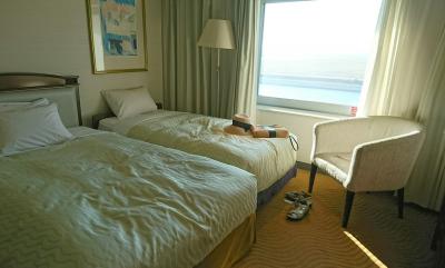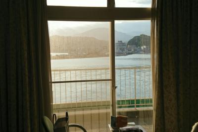 お部屋は洋室ツインで、レトロな感じですが、窓からは、海が見えました。