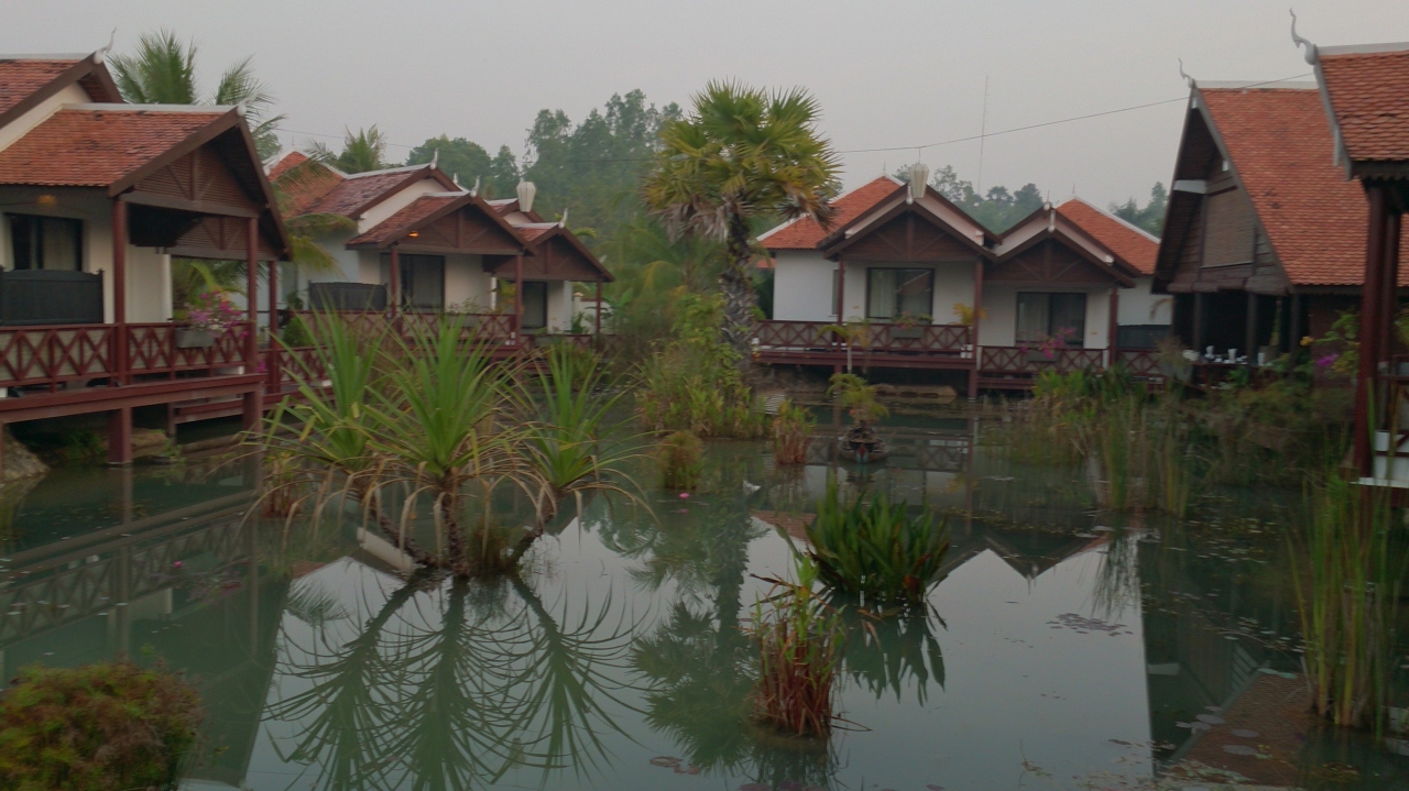 コテージの真ん中には蓮の池があり、各コテージにはプライベートプールが。