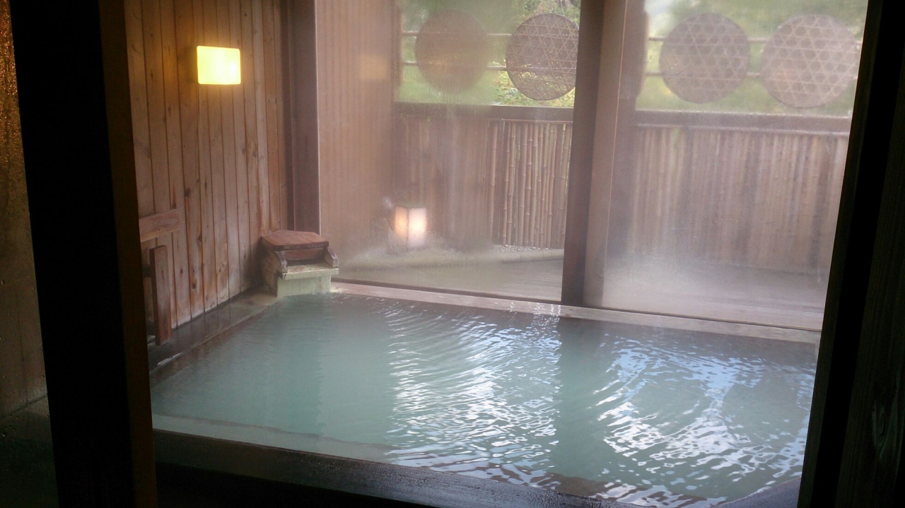 無色透明の温泉。内湯はぬるめで、外湯は熱め。良いバランスです。