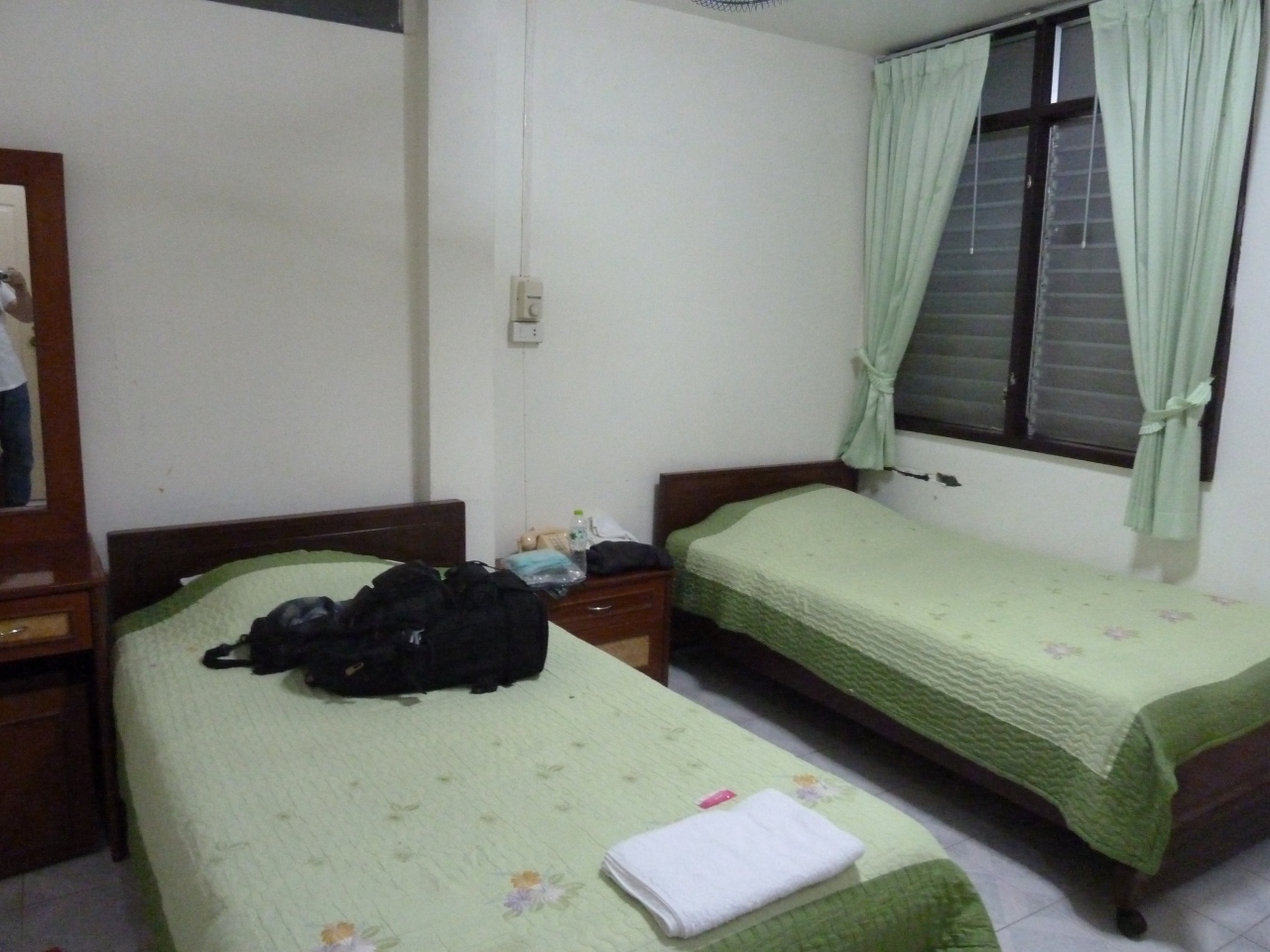 バスターミナル行きのソンテウが、ホテルの向かい側が発着点など交通の便はいい。また、国境までぱ、ほんのすぐそこなのでミャンマーへの基点として利用するもの便利。部屋は窓なしだったが、特に不便はなかった。朝食100Bは、高いかな。