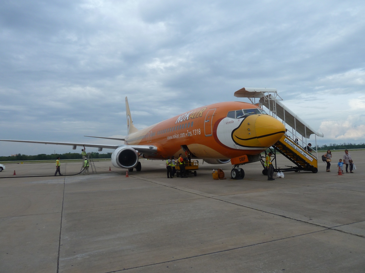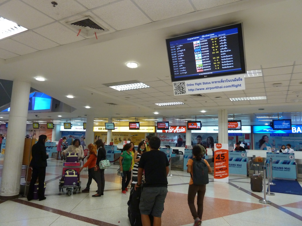 空港に着いて、国境行きと、市内行きのリムジンサービスがある。市内行きに乗ったが、ホテルの目の前で下してくれる。乗合のバンで、ある程度まとまらないと運行しない。値段は、80バーツだった。空港の2階は、レストランとなっている。
