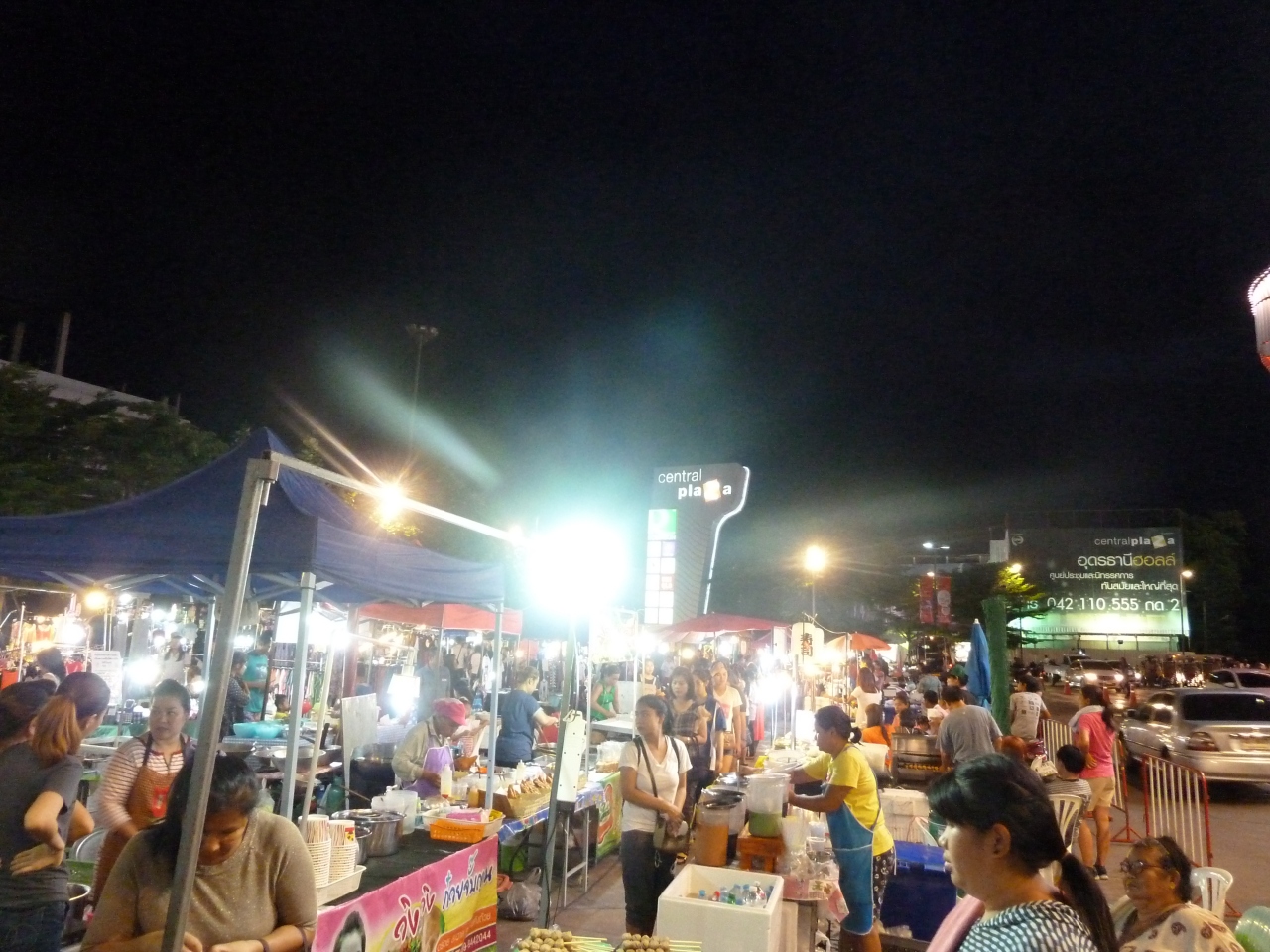 ウドンターニの駅の近くにあるデパートメントストア。店舗前で、屋台や土産品などの販売イベントをしていた。なかでもすごかったのが、昆虫のから揚げ実演。虫かごにいるコオロギみたいなのを網ですくって、そのまま素揚げして、それを調理する。びっくりだった。地下一階にあるフードコートはおすすめ