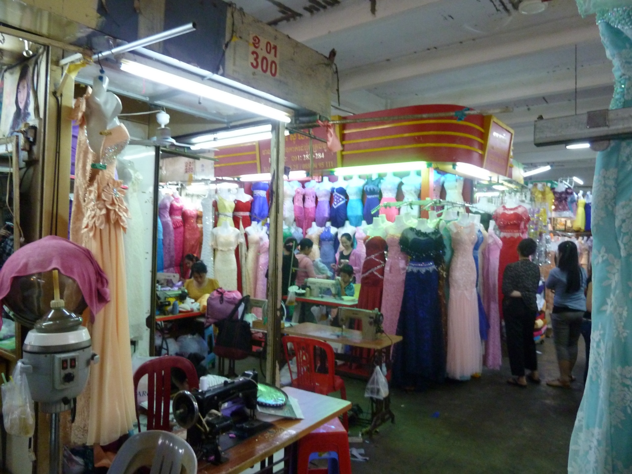 安宿が集まるオルセーマーケットに行ってきた。1階から3階まで、ごちゃごちゃ感たっぷりだけど、3階の一角は、注文縫製ができるのか、生地とミシンとがあった。