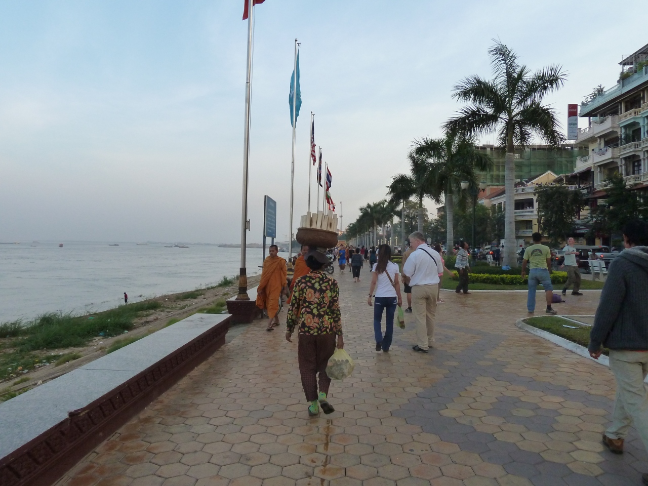 リバーフロントエリアは、のんびり散歩ができる。王宮の目の前なので、観光客も市民ものんびりしている。