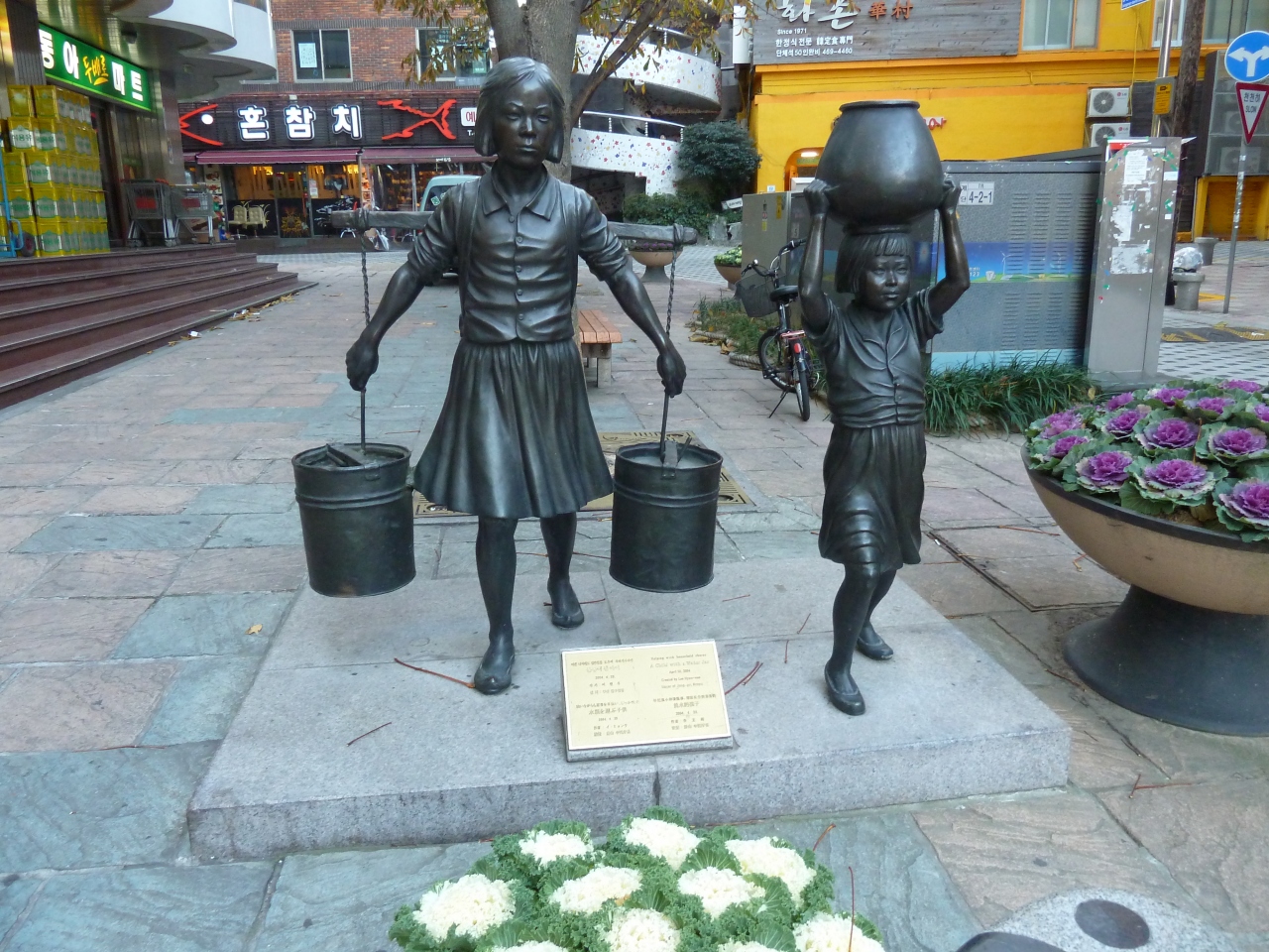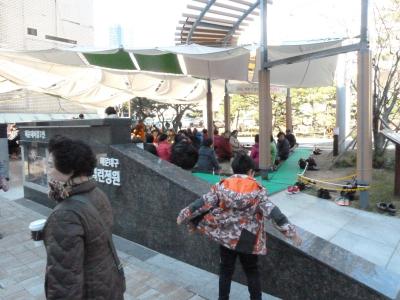 朝鮮戦争時、ソウルを追われた人々が、釜山で集合する場所は、40階段だったそうです。釜山港が一望できる場所として現在は、周辺の商店街のエリアに銅像やモニュメントなどでテーマパーク化しています。この40階段は、もともと日本人が作ったそうです。