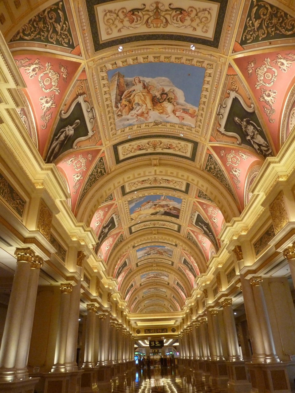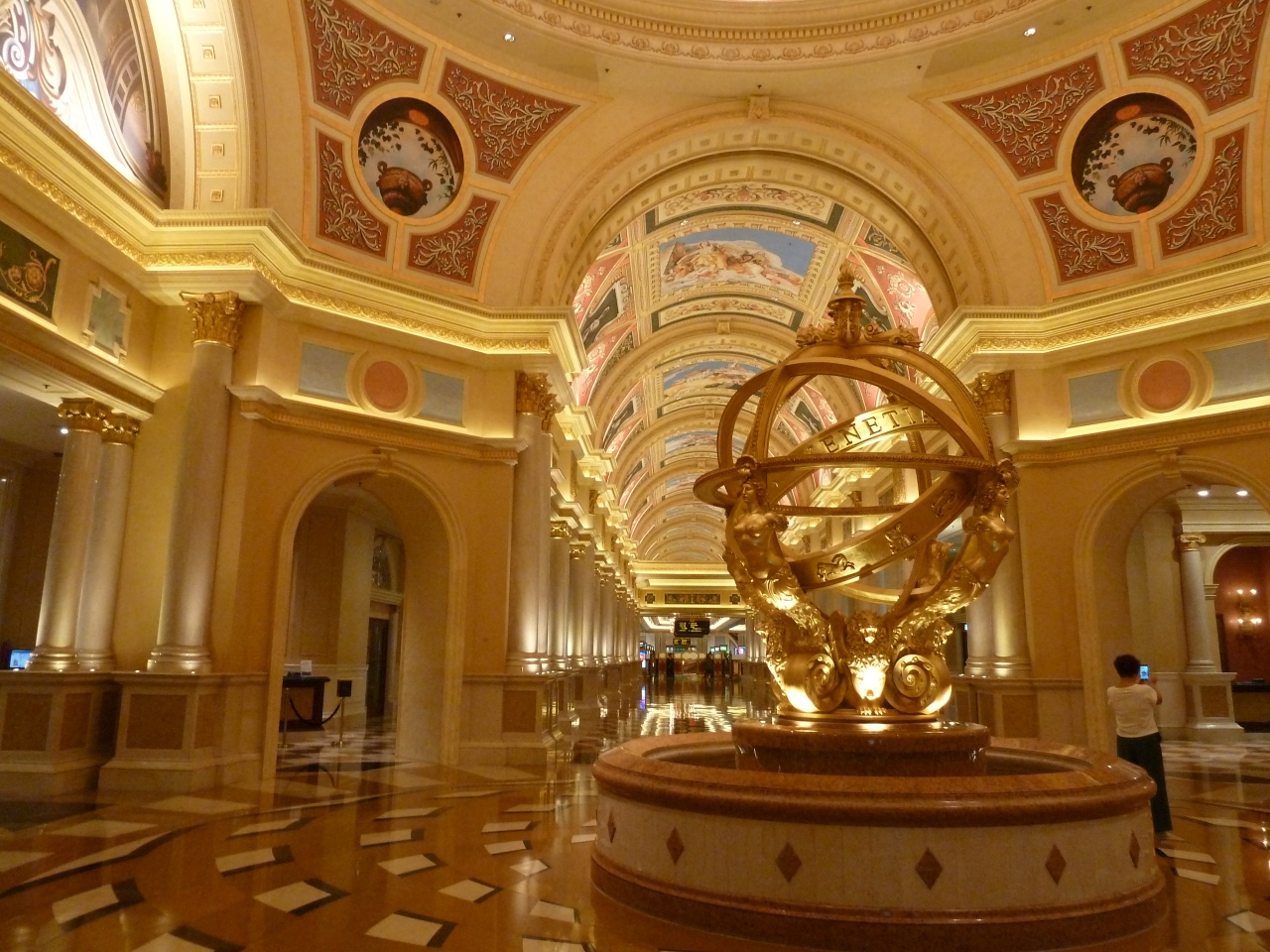 泊まりはしませんでしたが、見物だけしてきました。大通りからロビーに入ると豪華な天井画がカジノまで続いています。この絵画を見るだけでも行く価値あり。またホテル内には、エッグタルト発祥の店のサテライト店があるのでおすすめ。