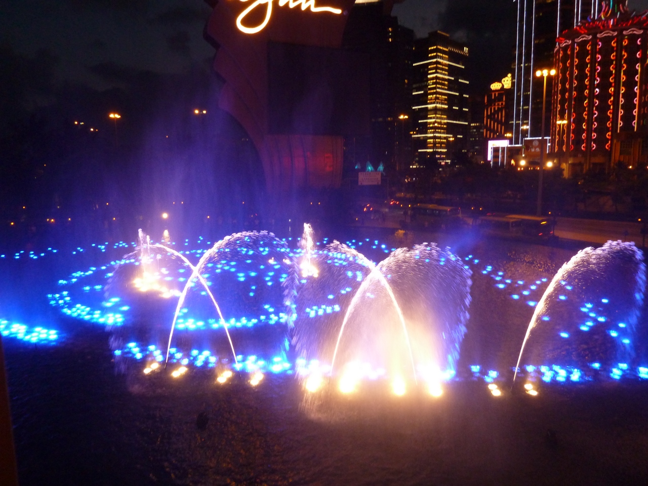 目の前の噴水広場では、定時に噴水ショーがある。- 旅行時期