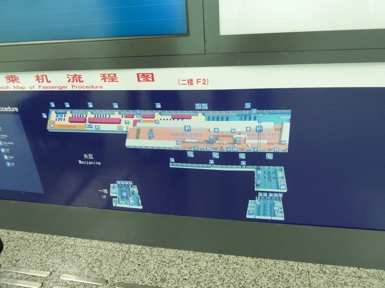 街中から、11キロなのでタクシー20分くらいで到着します。ATMは、出発ロビー6番(国内線)にある。国際線は、小さく、国内線は南方航空のカウンターとそれ以外のカウンターに分かれている。国内線の発券カウンターは、手荷物検査の内側で、外からは見えない。