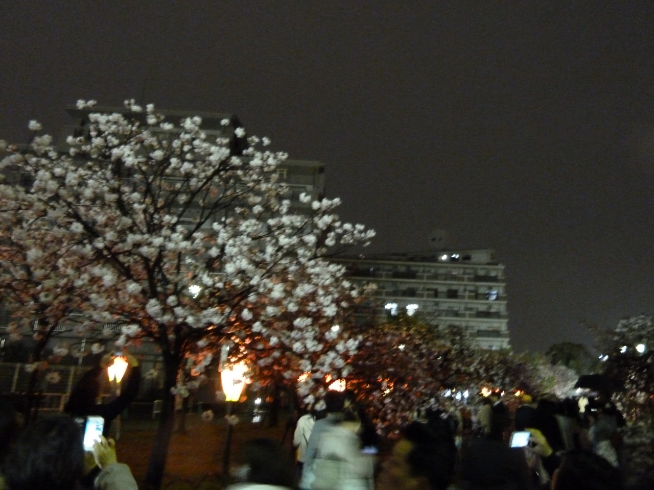 桜の通り抜け2日目の夜桜鑑賞に行ってきました。JR桜の宮から歩いて行きましたが、出口に着いてしまい、入口に回るまで20分くらいはかかりました。入口から出口までは、ゆっくり歩いて15分。半端ない距離でした。雨の中でしたが、人出は多く、きれいでした。