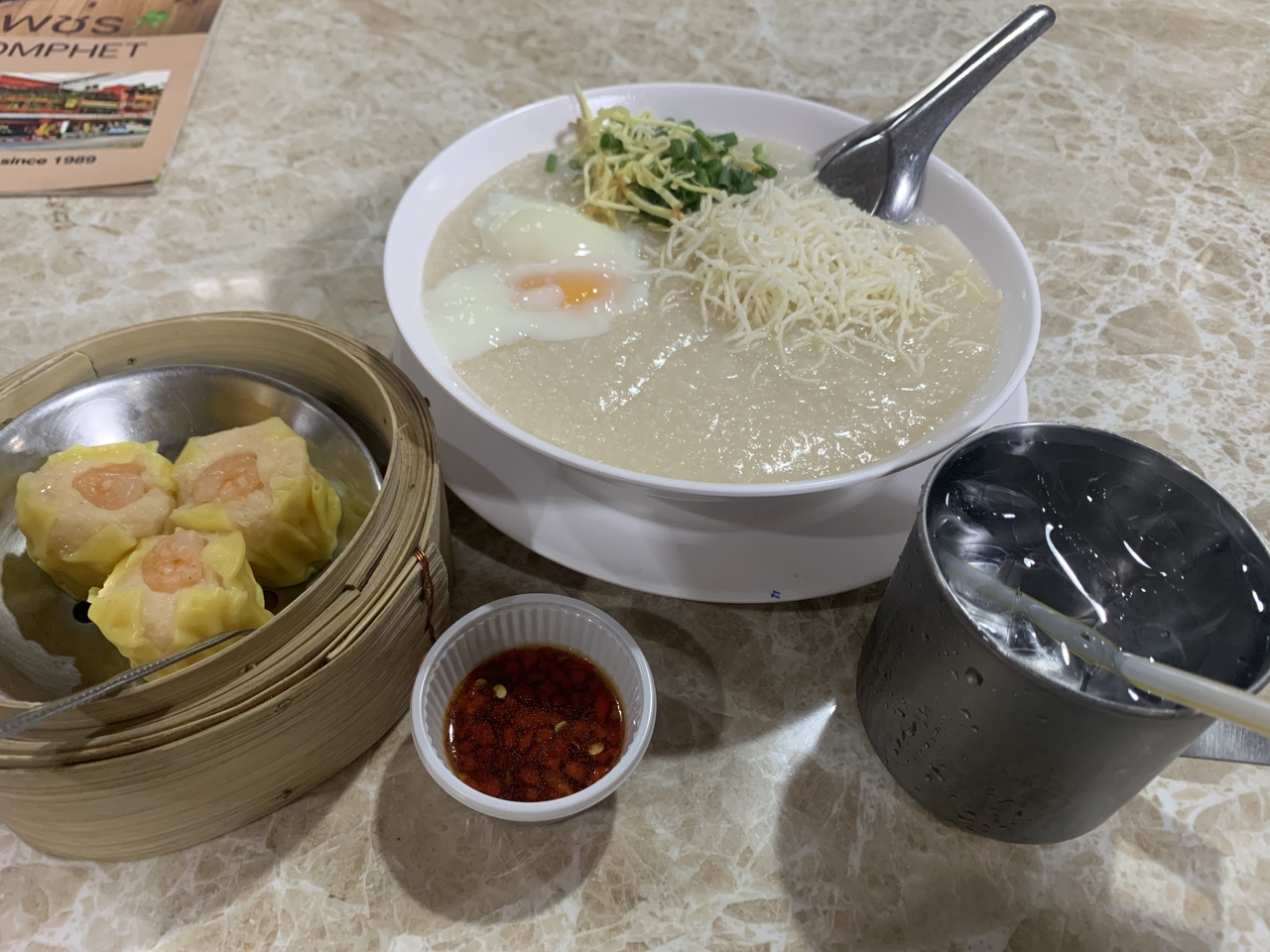 朝早くからやってる店で、お粥みたいなジョークの専門店。温玉と肉をいれても50バーツ,安いと思います。