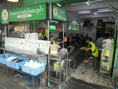 ピンクのカオマンガイに行く途中にあるお店。食べ比べてみると、そんなに味の違いはない。値段は、ほぼ一緒。