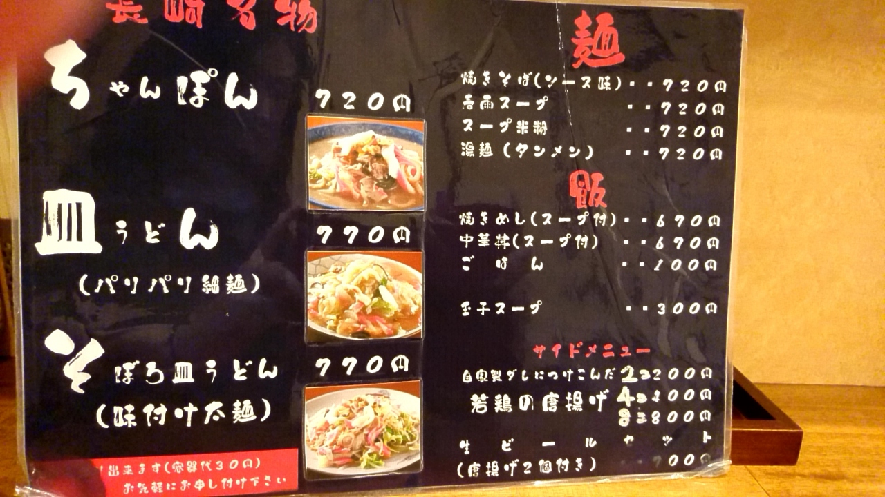 ちゃんぽん、そぼろ皿うどん、焼きめしを注文。全部で2000円くらいでした。