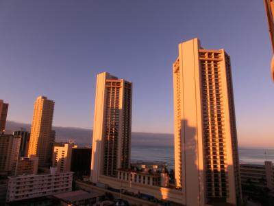 ラナイからはハイアットごしにビーチがみえて朝日もまぶしく気分良く一日を始めることができます。反対を向いたら山側で夜景が綺麗です。