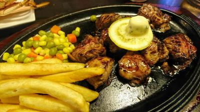ロブスターとステーキのセットで、コスパが良いステーキ店があると聞いて行ってきました。駐車場はお店の斜め前にあり無料です。