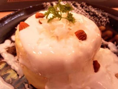 生地はキメが粗いのでソースが染みやすいのですが、パンの様な食感。パンケーキを食べてる感覚?味?では無かったです。