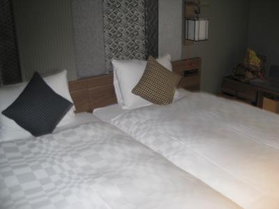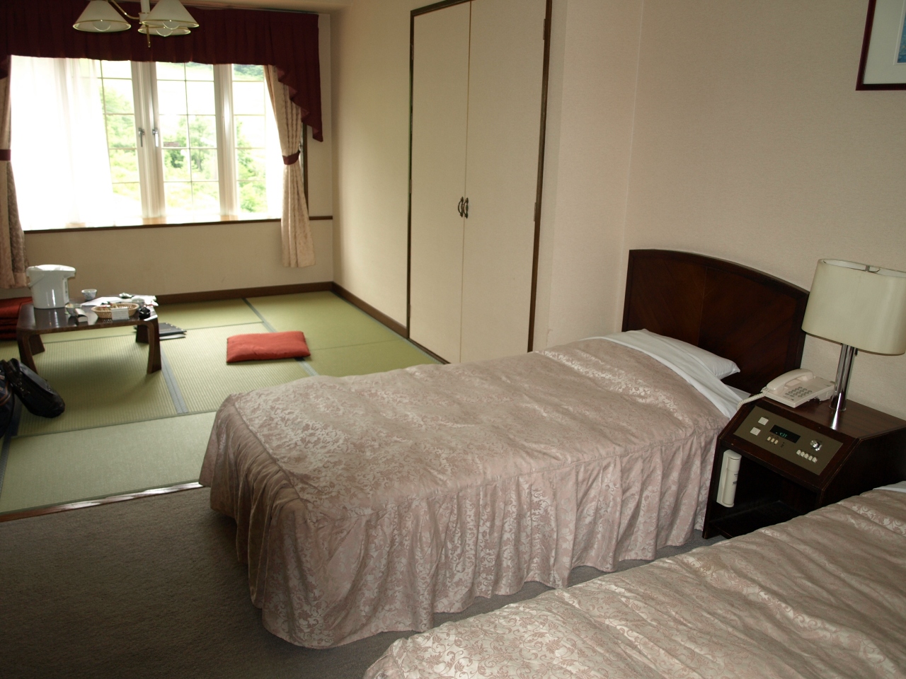 畳敷きの部屋にベッドが置いてある。部屋に入るとスリッパに履き替えるリソルのスタイル。問題は外国人がそれを守ってくれるかどうかだ。それと気になったのは布製のスリッパ。いくら消毒してあるとはいえ、好ましくない。紙製のものでもよいから使い捨てにしてもらいたい。