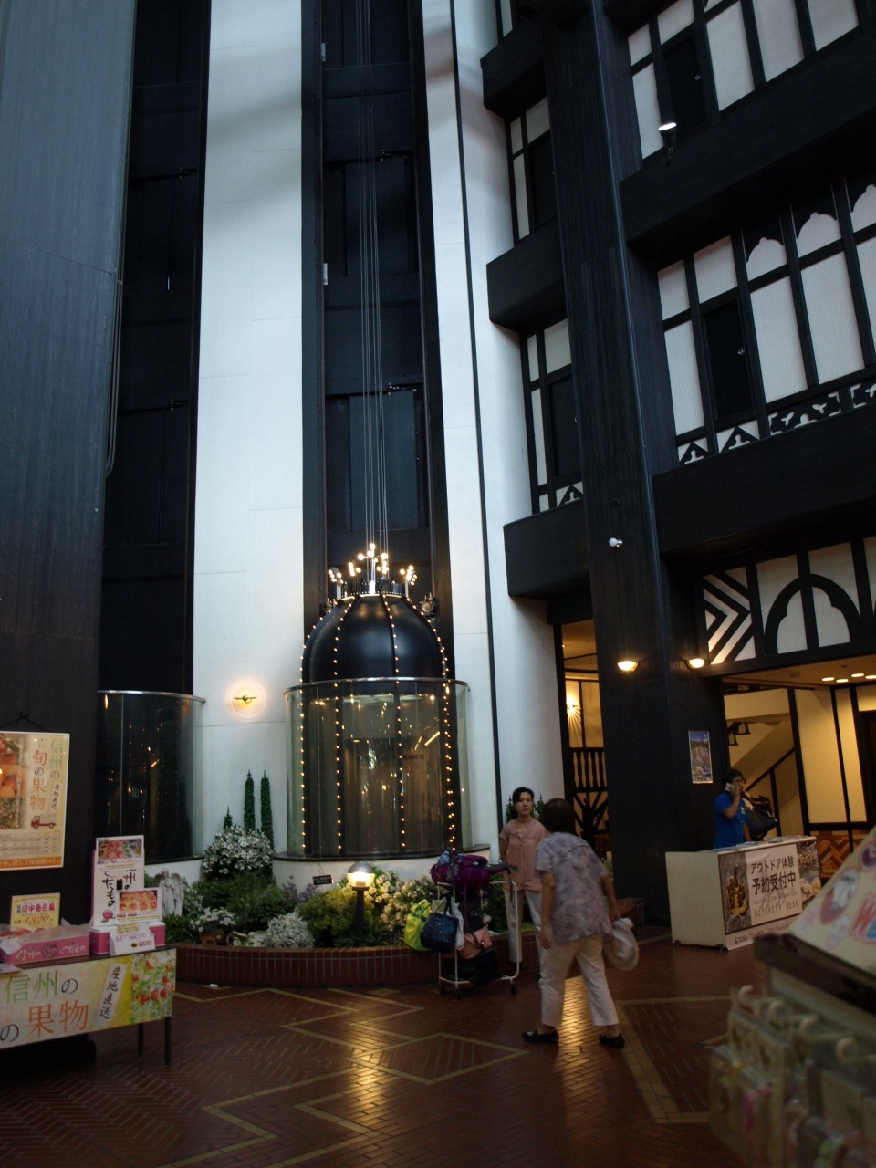 建物は湖に面して横に広がり、中ノ島が正面なのでロビーの広い窓からは絶景が見られる。これは浴場でも同じで、浴客はみな、一方向を向いて、湖と島に見とれていた。ロビーのデザインの良さは売店にもおよび、レイアウトは美術館を思わせるセンスのよさ、感心させられた。一方、客への応対はサラリーマン的でホスピタリティが伝わってこない。自分の仕事をこなしていればよいという感じ。