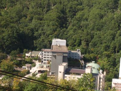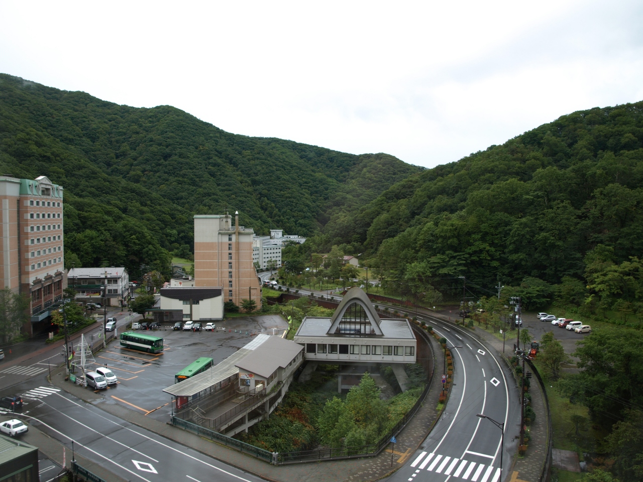 温泉街から外れているので静かなたたずまい。窓から見ると山の緑が濃い。クマ牧場ロープウェイまでは近い。割安の券も販売しているので、行きたい人はフロントで買っていくとよいだろう。風呂では外の露天風呂がとてもよい。小さな滝が眺められ、ゆっくり入っていたくなる。夕食はバイキングだったが、野菜料理豊富、寿司、カニ等良質。特にカニは最初から木の容器に小分けしてあり、大量に持っていけないようにしている。独占を防ぐよいアイデアだ。味付けもみなよし。ここで飲むサッポロ・クラシックの生ビールは東京では飲めない清涼さを感じた。