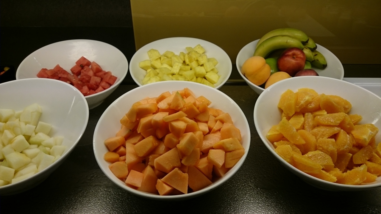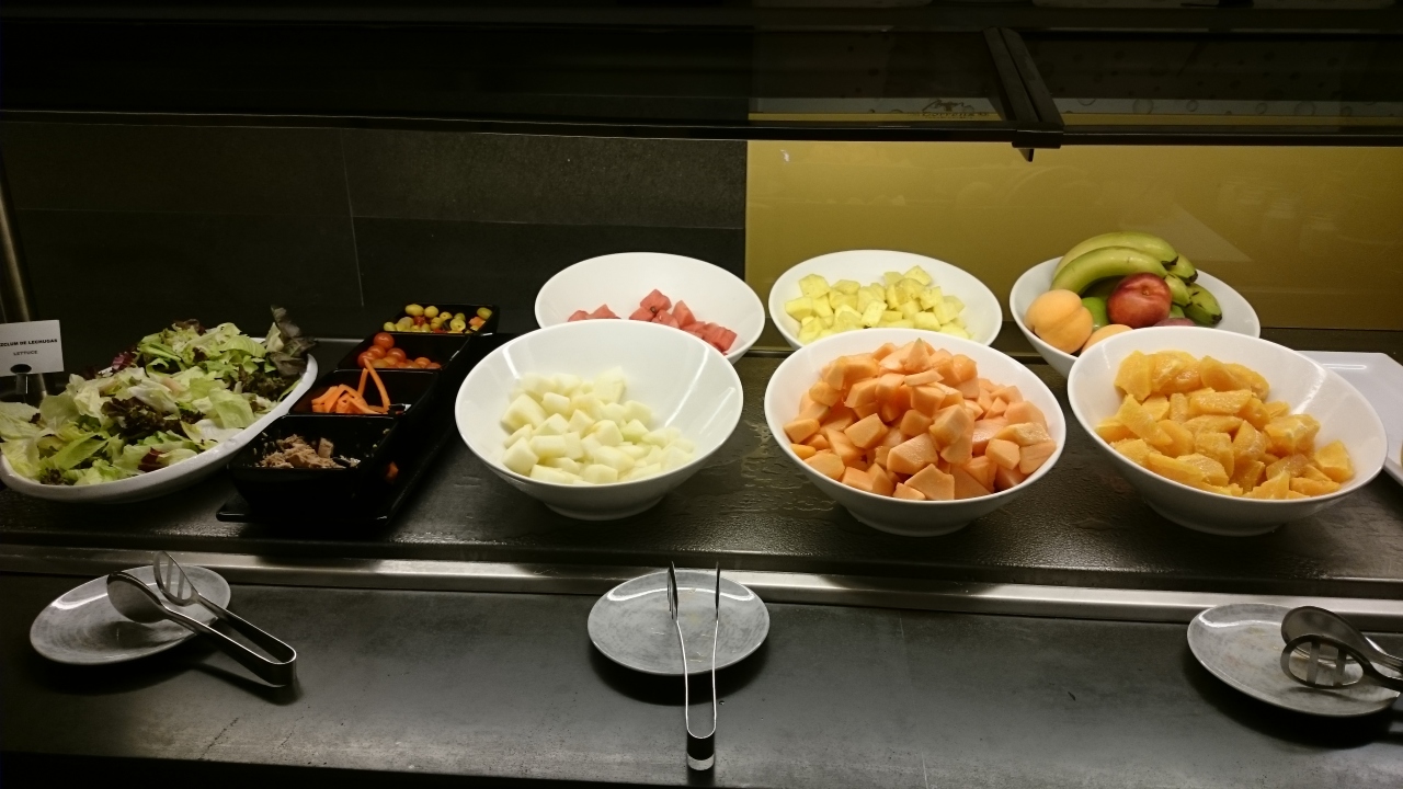 屋上は朝ごはん、夕食時はレストラン会場になっています。暖かい料理、ラップでサラダ等は保護されているので清潔です。