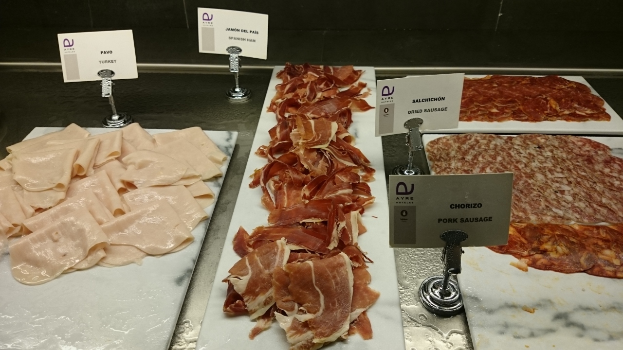 朝食も朝から、スペインバルセロナ地方の酒、CAVA(スペイン版シャンパン)が飲み放題、生ハムも食べ放題です。7時~11時まで朝食食べれますのでゆっくり食べる事が出来ます。
