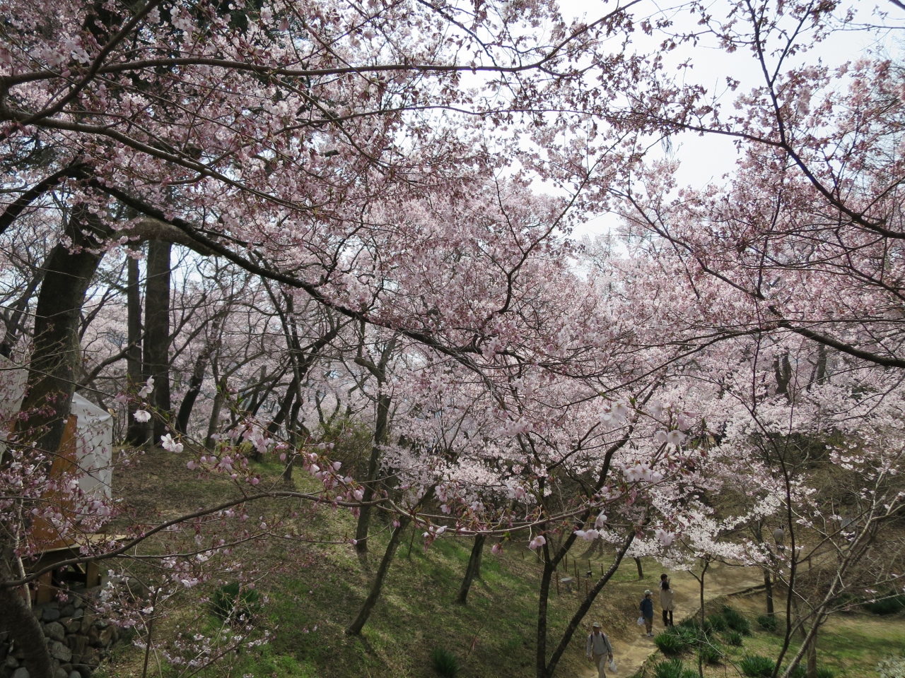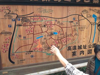 空は春霞で城址公園から桜越しに見る中央アルプスも霞んで見えましたが、園内の桜は見事に咲き誇っていました。- 旅行時期