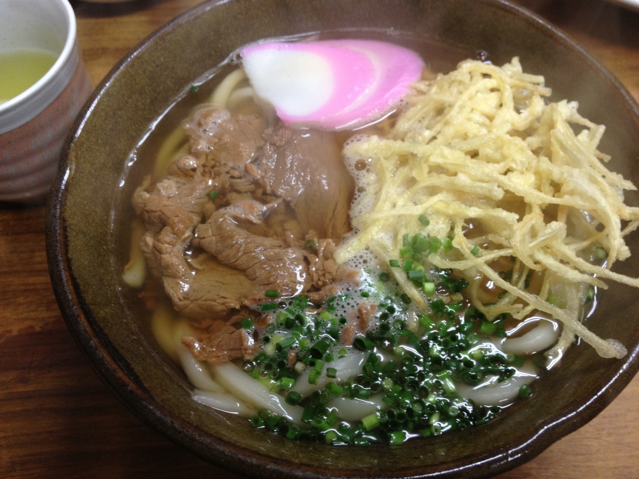 旦過市場内にあるうどん屋さん。昼食を食べるお店を探していたときに、店頭のおでん鍋に引かれて入ってみました。注文した肉ごぼう天うどんは、あっさりしたお出汁に、ちょっと甘めの味付けたお肉、サクサクのごぼう天が入っていて、素朴なおいしさでした。ほかのテーブルの人が食べていたちゃんぽんも気になりました(笑)。