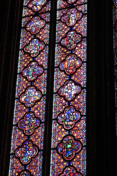 ステンドグラスが淡い色合いで、パリで見た豪華で鮮やかなものとは、
