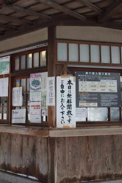 内部は撮影禁止です。入口で渡される案内に、「視線を下げて障子の腰板を見るように」「壁の色や天井に注目」などと書かれていて、その通りに視線を低くしてみると立ったままでは目に入らない場所にも細かい細工が施されていて、見ごたえがありました。が、真冬に行ったので、館内は暖房がなくとにかく寒かった!! 冬場は底冷えのする寒さです。寒さ対策で、入口で毛糸の靴下を貸し出してくれます(笑)。