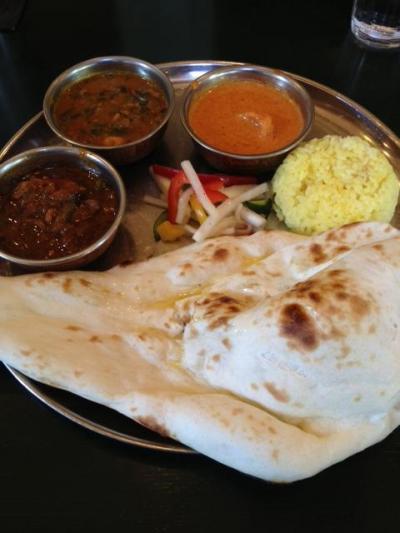 もちもちのナンと、3種類それぞれ違った味わいでおいしかったです。