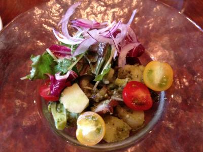 スープにもやしなどの野菜が入った、野菜つけ麺をオーダーしました。