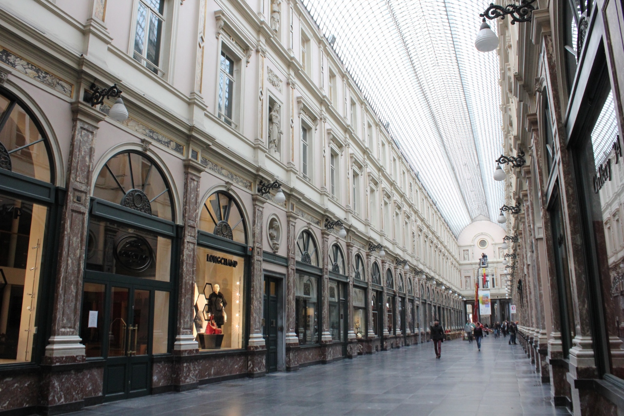 歴史のある美しいアーケード。有名なチョコレートショップはもちろん、素敵な本屋さんやおいしいパン屋さん、カフェなどが並んでいます。ショーウインドーを眺めるだけでも楽しいので、グランプラスに行く前後に立ち寄ることをオススメします。
