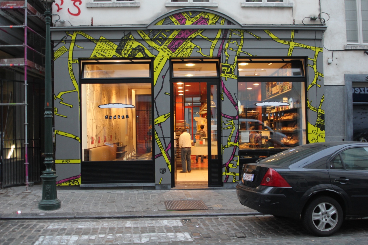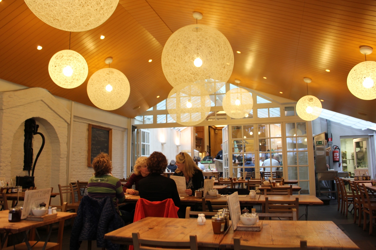オーガニックのパン屋さん。日曜日の朝、サブロン広場のアンティーク市に行く前に朝食を食べに行きました。テーブルにはジャムやチョコスプレッドの瓶が並び、食べ比べましたが、どれもおいしかったです。ケーキ類もおいしそうでしたが、さすがに食べられず。違う時間にも行ってみたかったです。
