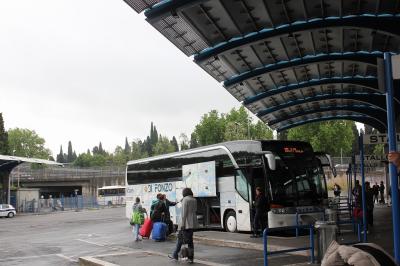 利用したのは、ローマ駅近くのホテルから、ティブルティーナのバスターミナルまで。最初は電車での移動も考えましたが、移動が朝の通勤時間近辺だったこと、見知らぬ駅で大きなスーツケースを持って移動することのリスクを考え、タクシーにしました。