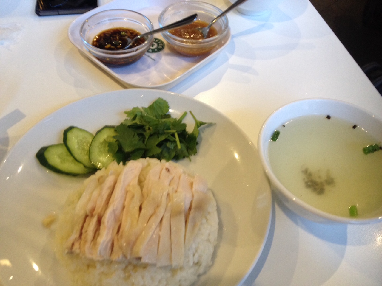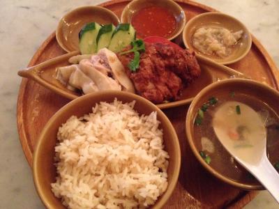 汐留シティセンター内にあるシンガポール料理のお店です。シンガポールといえばチキンライスですが、こちらでは蒸したものと、油で揚げたものの2種類があり、両方食べたい人用に、ハーフ&ハーフがあります。しっとりした蒸し鶏とパリパリ香ばしい揚げ鶏。どちらもおいしいので、初めての人はぜひハーフ&ハーフで!